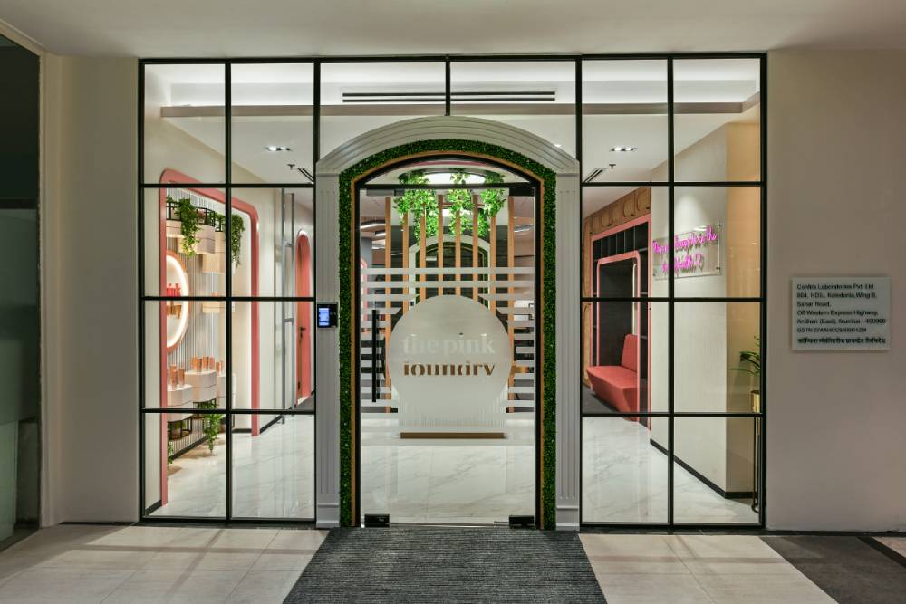 Designed for Pink Foundry, this corporate office blends soft, curving architectural elements with a focused, functional workspace. The layout utilizes warm wood, subtle pink accents, and black metal shelving to create a vibrant, yet professional, environment. Maximizing natural light and ensuring employee comfort were key to this contemporary and collaborative design.